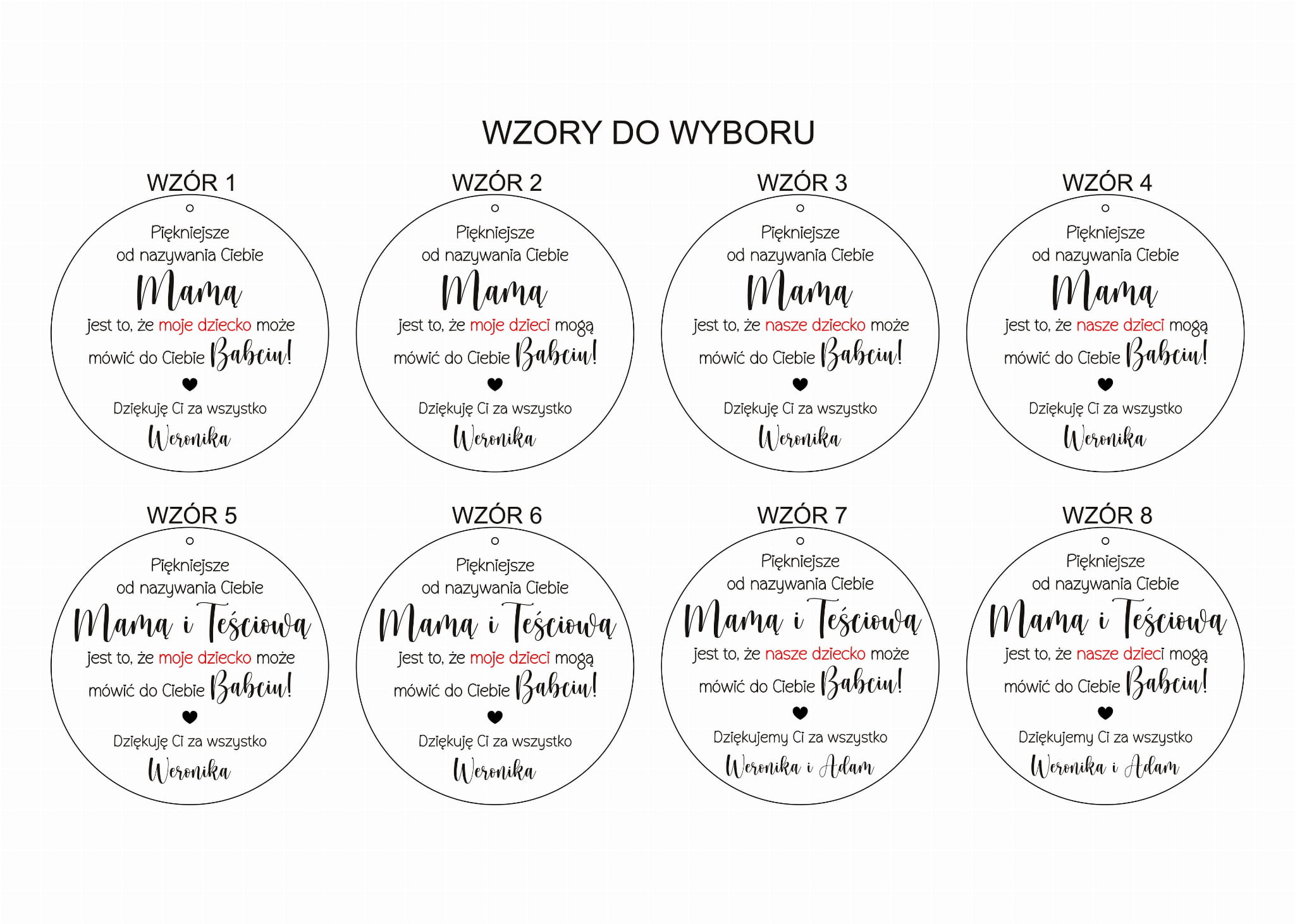 Wszystkie dane potrzebne do personalizacji prosimy wpisać w polach u góry strony, przed dodaniem do koszyka.