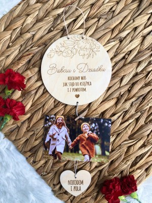 Drewniana zawieszka na zdjęcie to pomysł niebanalny, który wyróżni się na tle innych, zaskoczy, wywoła uśmiech i będzie piękną pamiątką dla Babci, Dziadka lub Dziadków.