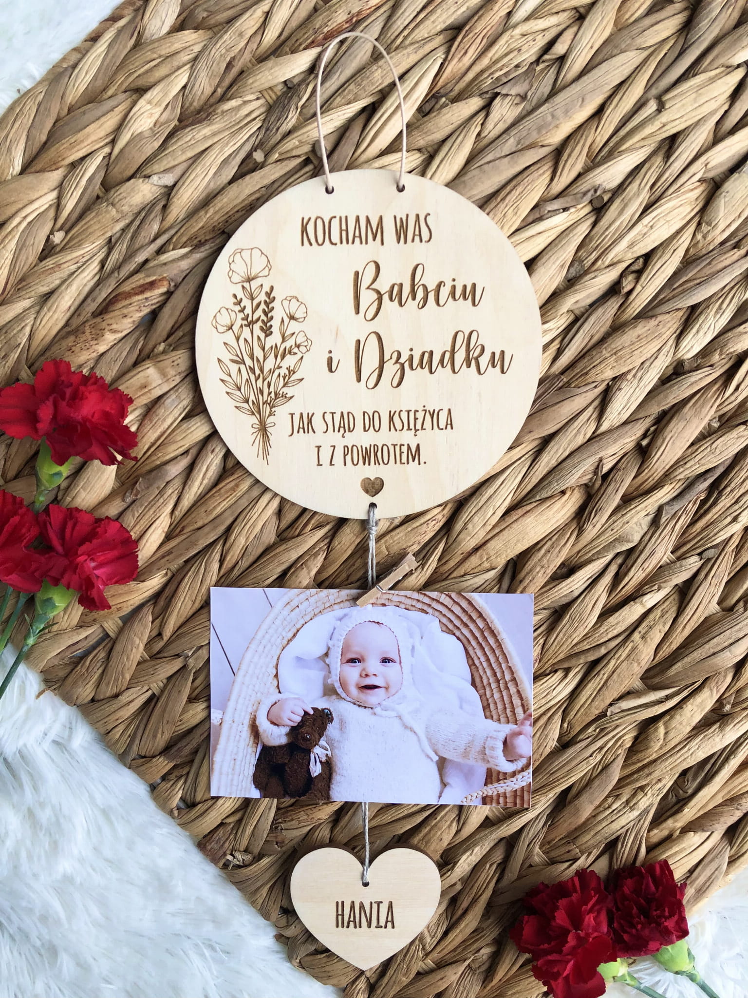Drewniana zawieszka na zdjęcie to pomysł niebanalny, który wyróżni się na tle innych, zaskoczy, wywoła uśmiech i będzie piękną pamiątką dla Babci, Dziadka lub Dziadków.