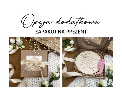 - Zapakuj na prezent - Przy zakupie tej opcji zawieszka zapakowana jest w kwadratowe, tekturowe pudełko z okienkiem przewiązane wstążką.